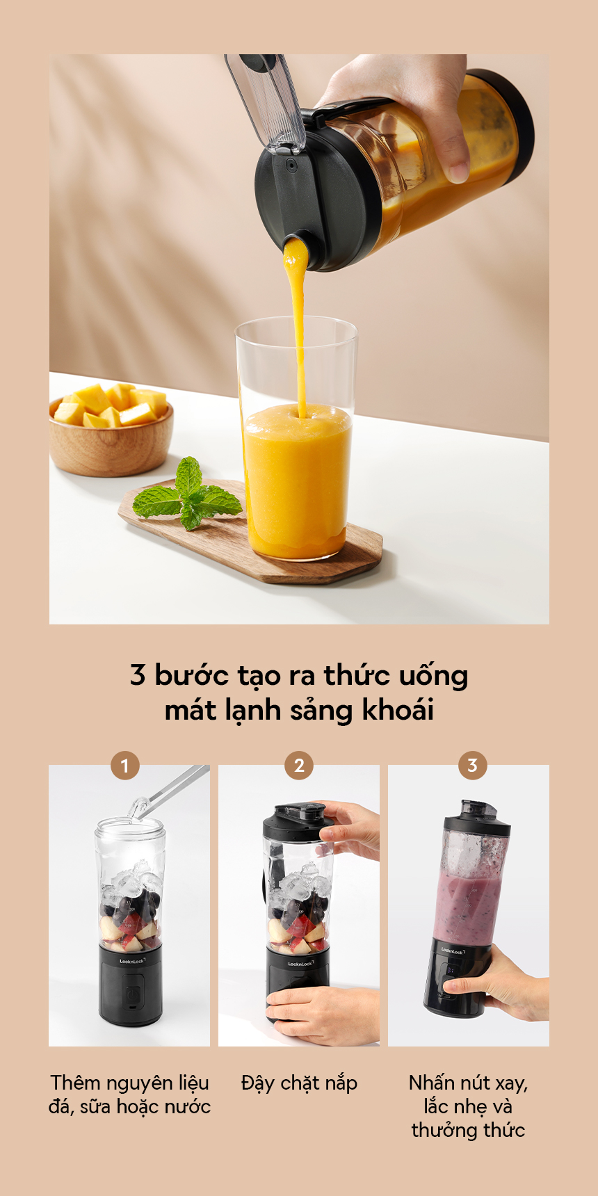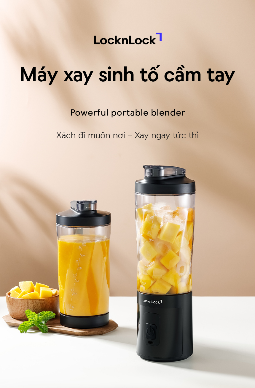 Máy Xay Sinh Tố Cầm Tay LocknLock EJJ356BLK 600ml, Hàng Chính Hãng, Nắp Có Miệng Uống – JoyMall