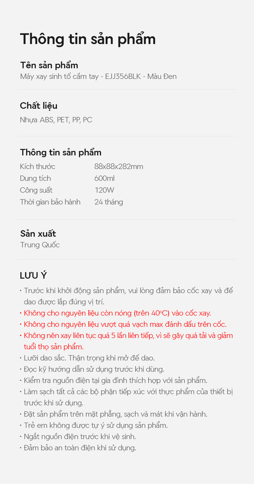 | Xuất xứ (Made in) | Trung Quốc |