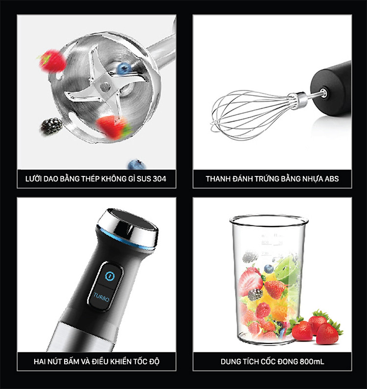 Máy xay sinh tố cầm tay có chế độ khóa an toàn, tự động ngắt điện khi quá tải bảo đảm an toàn cho người dùng.
