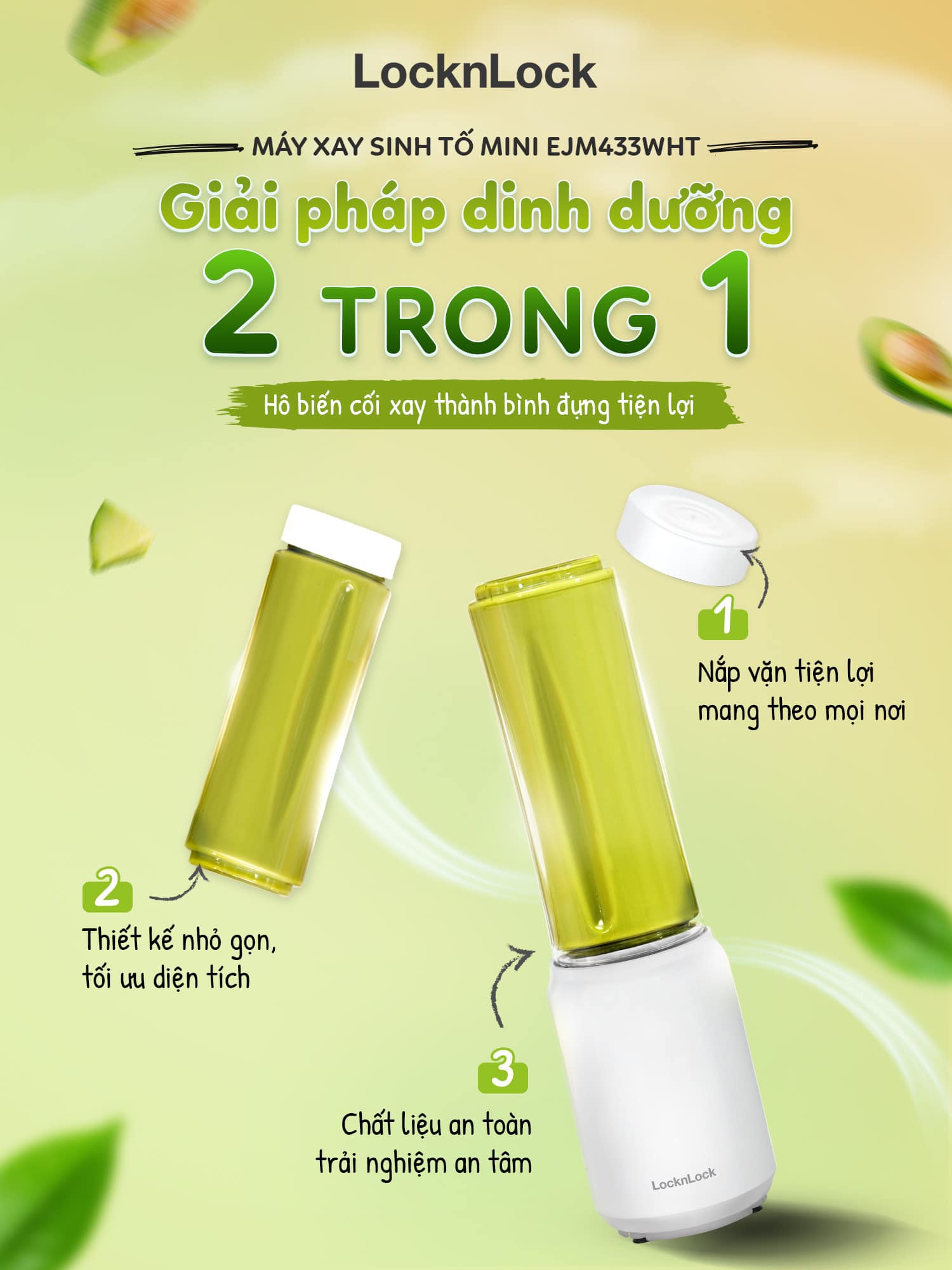 Máy Xay Sinh Tố Mini Blender LocknLock EJM433WHT 150W 280ml, Hàng Chính Hãng, Nhỏ Gọn - JoyMall
