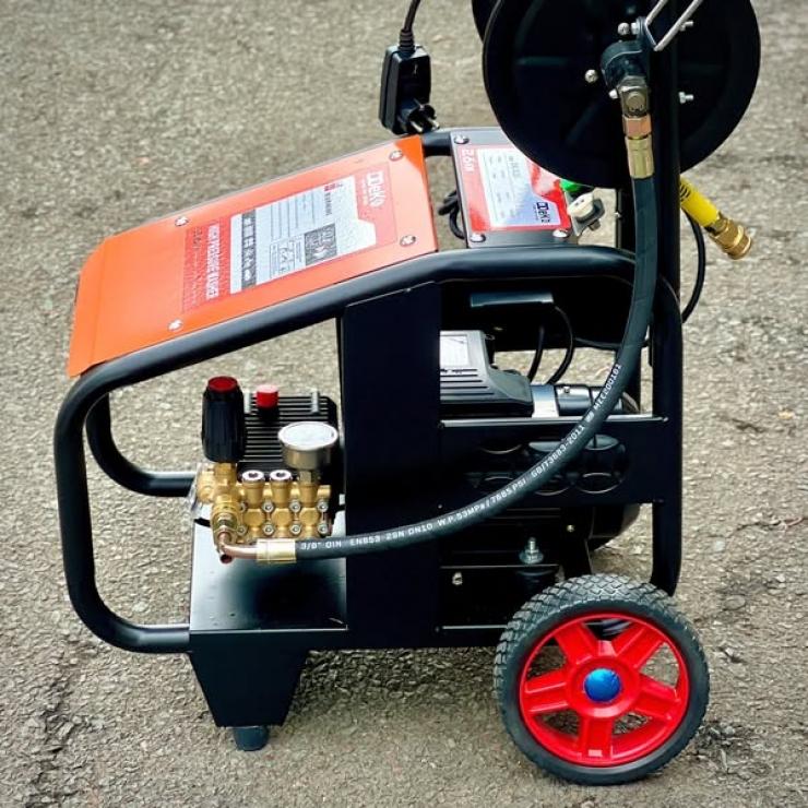 DEKO DK-X26 (hay DEKO DK-X22 2.6kW) là phiên bản nâng cấp mạnh mẽ hơn của dòng máy rửa xe cao áp chuyên nghiệp đầu liền, được thiết kế để chịu tải cao cho các tiệm rửa xe ô tô, xe máy và vệ sinh công nghiệp. Thông số kỹ thuật ấn tượng Công suất: 2600W (2.6kW). Áp lực phun: Hoạt động ổn định ở 100- 110 Bar (Tối đa lên tới 110 Bar). Lưu lượng nước: 12 Lít/phút (Lưu lượng cực lớn giúp xả bùn đất nhanh chóng). Động cơ: Motor cảm ứng từ 100% dây đồng, tốc độ 2800 vòng/phút. Đặc điểm nổi bật của dòng X-Series Chuyên dụng cho tiệm: Khác với dòng P (xách tay gia đình), dòng DK-X26 có thiết kế dạng xe đẩy với bánh xe lớn, khung thép chắc chắn, cho phép chạy liên tục nhiều giờ mà không bị sụt áp. Khả năng chỉnh áp: Tích hợp cụm chỉnh áp chuyên nghiệp và đồng hồ đo áp lực, giúp bạn dễ dàng kiểm soát lực phun phù hợp cho từng loại xe. Phụ kiện cao cấp: Đi kèm thường là súng cao áp loại dài và dây lõi thép thủy lực siêu bền, không bị bục vỡ dưới áp suất lớn. Hệ thống béc phun: Sử dụng 4 đầu béc (0°, 15°, 25°, 40°) giúp đa dạng hóa mục đích từ xịt gầm đến rửa mặt sơn xe.
