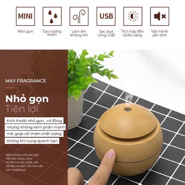 Tặng 1 lọ tinh dầu nguyên chất 100% 10ml trị giá 50k ( được chọn mùi hương ở phân loại ) Sản phẩm được bảo hành 6 tháng..lỗi 1 đổi 1 trong vòng 7 ngày. Quý khách hàng tại nội thành hà nội chọn :vận chuyển hoả tốc(grab or now ship) để nhận được hàng luôn và ngay nhé. Thông tin sản phẩm đèn xông tinh dầu : - Máy khuếch tán hương hay còn gọi là máy xông tinh dầu giúp thư dãn, giảm stress mệt mỏi thích hợp cho mọi đối tượng và mọi lứa tuổi. Từ phụ nữ có thai hay đến trẻ nhỏ đều rất oke điều hòa không khí khi nằm phòng điều hòa đó ạ - Sản phẩm máy phun sương, máy xông tinh dầu aroma mini có thiết kế đẹp, nhỏ gọn, xinh xắn, có nhiều loại hình dáng khác nhau, không chiếm quá nhiều diện tích và có thể đặt trên bàn làm việc, bàn ở phòng ngủ, phòng khách, phòng ăn hay trong xe hơi. - Dung tích máy xông tinh dầu aroma chứa nước đến 130ml có thể phun liên tục 3 đến 4 tiếng không cần châm nước. - Công suất 3w đủ để diện tích từ 15 - 25m2 - Chất liệu: pc và pp. - Kích thước: khoảng 9,5 x 9,5 x 10cm… - Màu sắc: màu vân nhạt và màu vân đậm