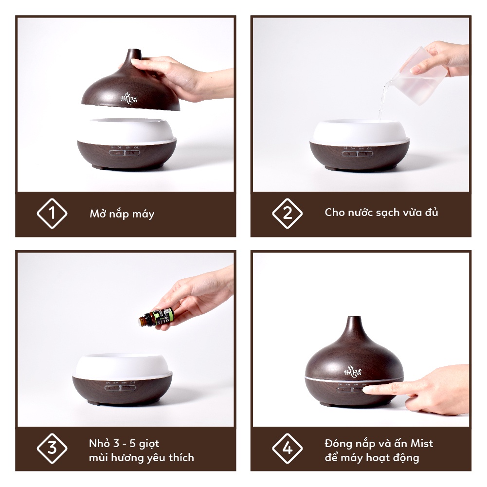 Nhà cửa & Đời sống > Chất khử mùi, làm thơm nhà > Máy khuếch tán, tạo ẩm & xông tinh dầu || Máy xông tinh dầu Haeva Thiên Ý,Chất liệu cao cấp, Vân Gỗ sang trọng dung tích 300ml, chức năng hẹn giờ , tạo độ ẩm