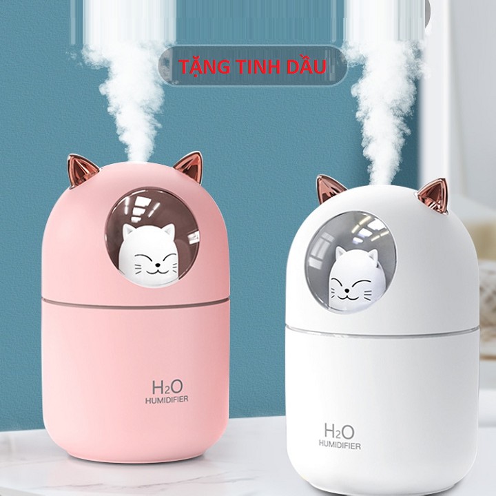 Máy xông tinh dầu phun sương mini cao cấp có đèn led làm đèn ngủ 300ml hình thú cute trang trí nhà cửa- tặng tinh dầu