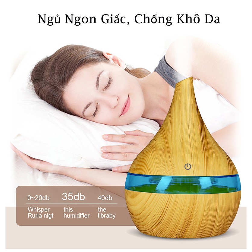 "Máy xông tinh dầu, Phun sương, tạo ẩm Tích Hợp Đèn ngủ Led 7 màu vân gỗ sang trọng trang Trí Phòng Cực Đẹp với dung tích lên đến: 300ml