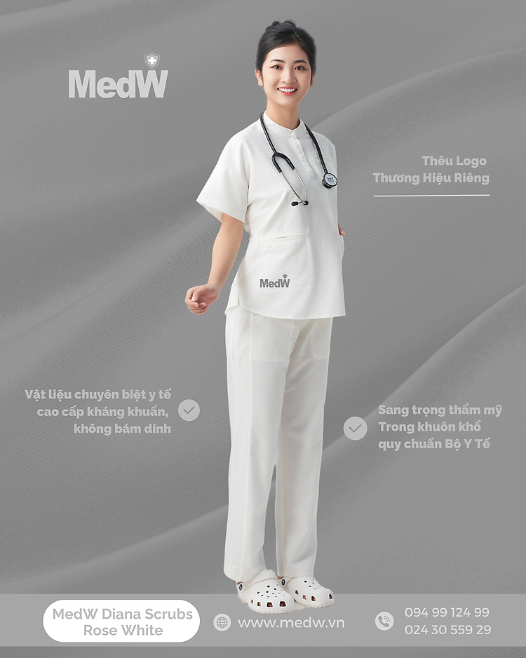 Thiết kế MedW Pháp Tuân thủ quy chuẩn Bộ Y Tế Trang Phục Y Tế , Nước Sản xuất: Việt Nam