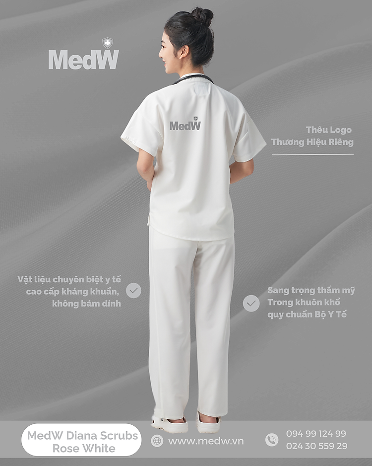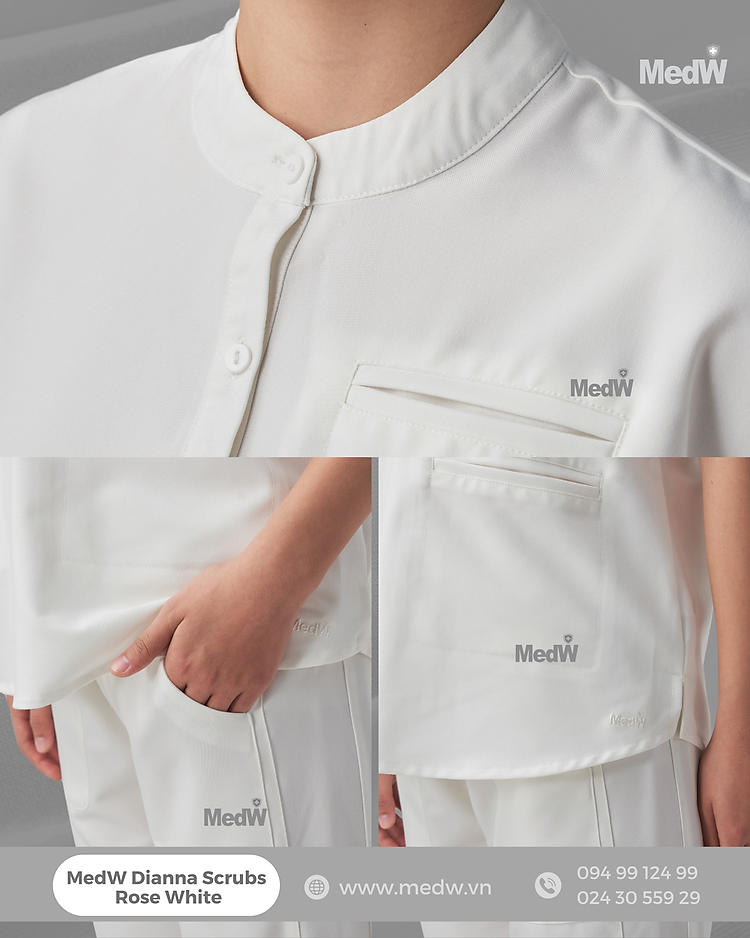 MedW Dianna Scrubs Y Tế (Nữ) Trắng Cổ Nhật là bộ trang phục bác sĩ dành cho phẫu thuật viên, kỹ thuật viên phòng mổ, bác sĩ, dược sĩ, hộ lý, điều dưỡng phòng khám, bệnh viện, trung tâm y tế, trung tâm tiêm chủng kỹ thuật viên thẩm mỹ viện, Spa, Trang Phục Ngành Y Tế