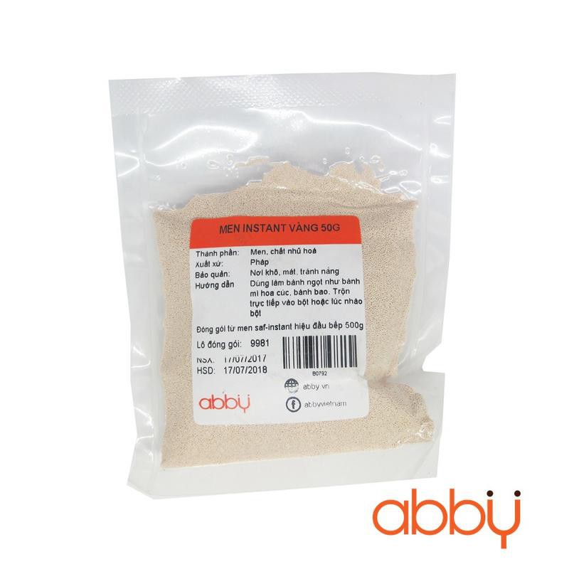 Các bạn đam mê bánh chắc chắn không thể không biết đến Men instant vàng – được coi là linh hồn của một chiếc bánh ngọt hoàn hảo. Men có xuất xứ từ Pháp, là loại men được các đầu bếp trứ danh tin dùng để làm bánh ngọt như bánh mì ngọt, bánh mì hoa cúc, bánh bao.. Men có độ ổn định cao, nên khi dùng tiết kiệm hơn so với các men khác trên thị trường, khi dùng trộn trực tiếp vào bột khô hoặc lúc nhào bột đều mang lại kết quả như ý. Đặc biệt men gói 50g được chia nhỏ từ túi to giúp người dùng dễ dàng sử dụng, nhất là những bạn muốn dùng thử hay mới tập làm bánh. --------------------------- Men instant đỏ 50g là sản phẩm sử dụng cho tất cả quy trình làm bánh. Loại men này rất dễ sử dụng, nó không cần bổ sung nước giống như men khô hoạt tính, mà còn cho khả năng lên men từ 30 đến 40 phần trăm cao hơn so với những loại men sau này. Bạn có thể được đổ trực tiếp vào trong máy trộn ngay từ lúc bắt đầu trộn hay rắc lên trên bột khi bắt đầu trộn bột. Men instant đỏ 50g là sản phẩm dành cho các loại bột bánh mì lạt (từ 0-10% đường tùy theo tỷ lệ trọng lượng bột). Đây là loại men nở rất nhanh, cho phép làm bánh mỳ với chỉ 1 lần ủ nở. Ưu điểm nổi bật của men instant đỏ 50g: