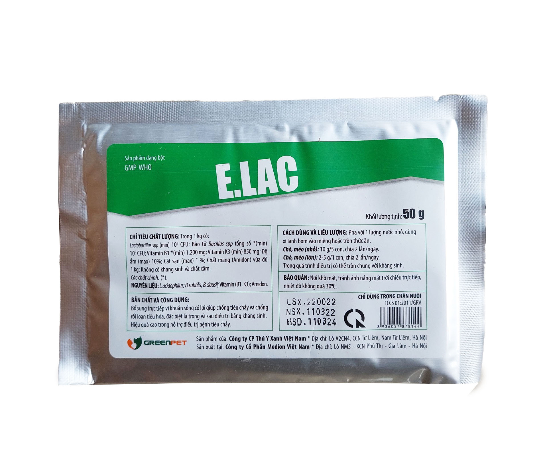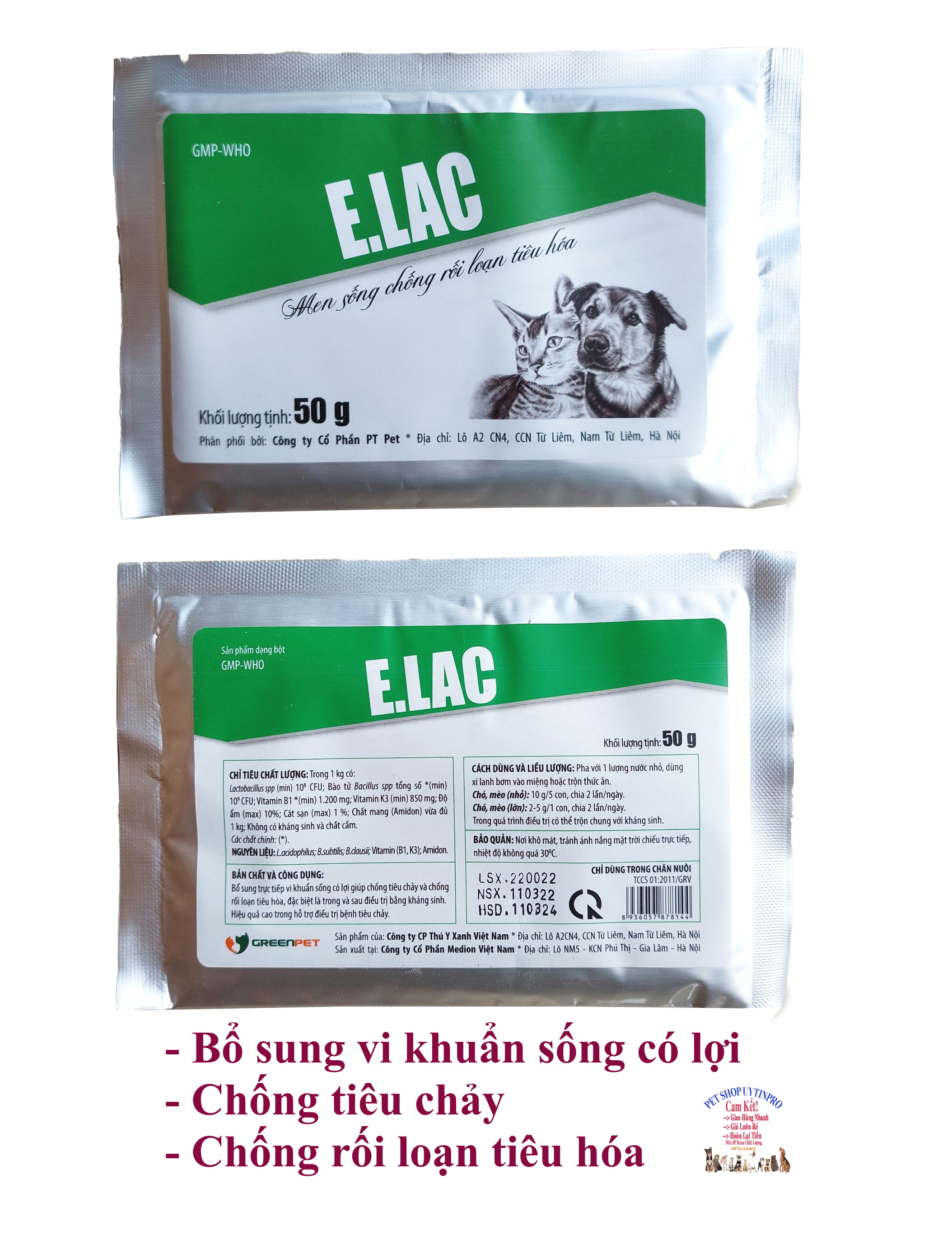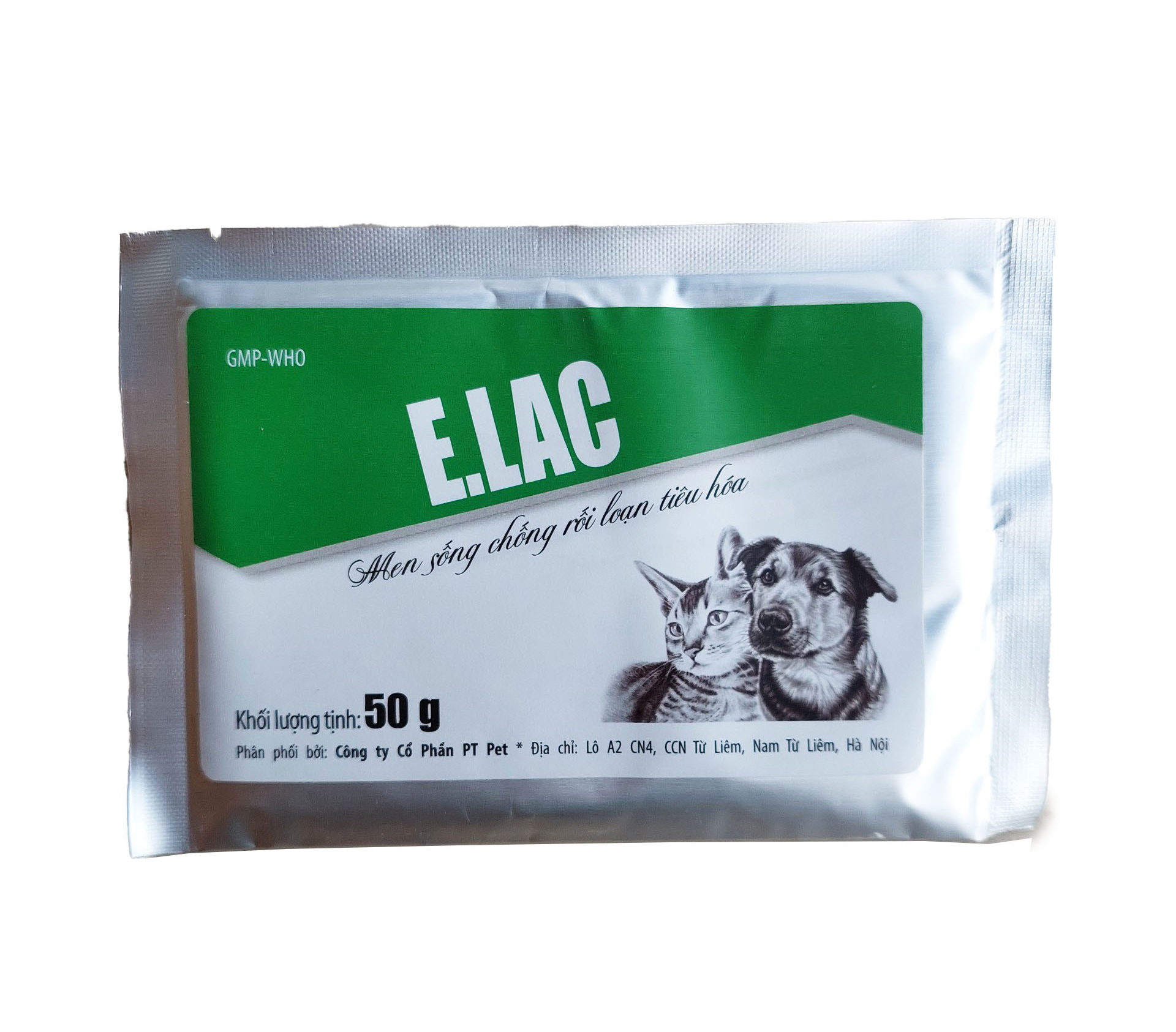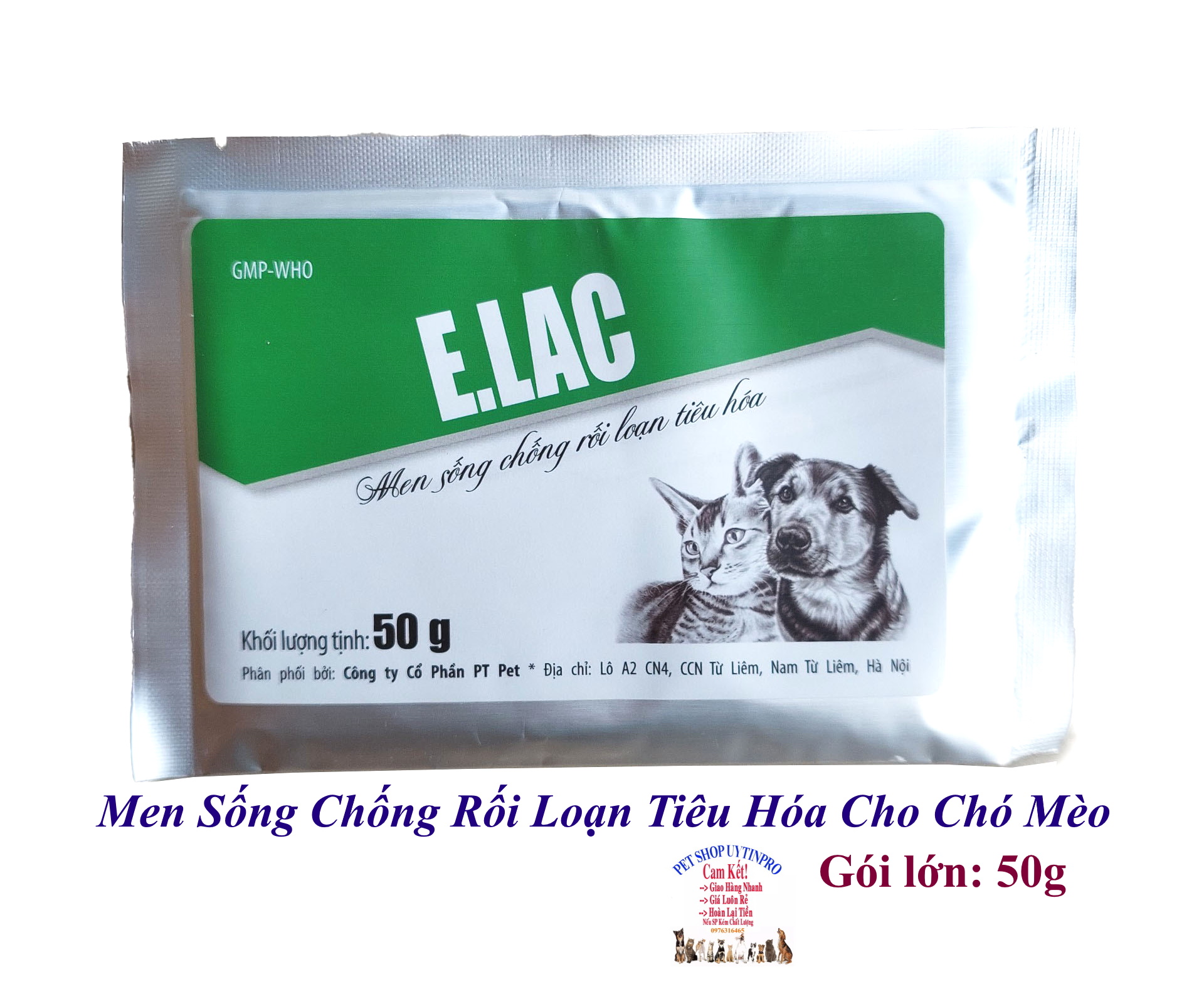 Men sống chống rối loạn tiêu hóa cho Chó Mèo E.Lac Gói 50g Bổ sung vi khuẩn Chống tiêu chảy có lợi Sx tại Việt Nam