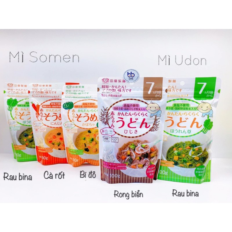 : Mì Somen - Udon tách muốn Akachan Nhật Bản giàu chất dinh dưỡng, sợi bún được cắt ngắn, sợi nhỏ, mềm, bé sẽ ăn dễ dàng. Sợi mì được làm hoàn toàn từ rau củ (bí đỏ, rau bina, cà rốt) nên cực kỳ an toàn và dễ tiêu hóa với bé. Sợi mì luộc xong rất mềm mại, tùy theo mức độ ăn thô của bé, mẹ có thể cà nát dễ dàng hoặc cắt nhỏ bằng muỗng (rất nhanh ạ)