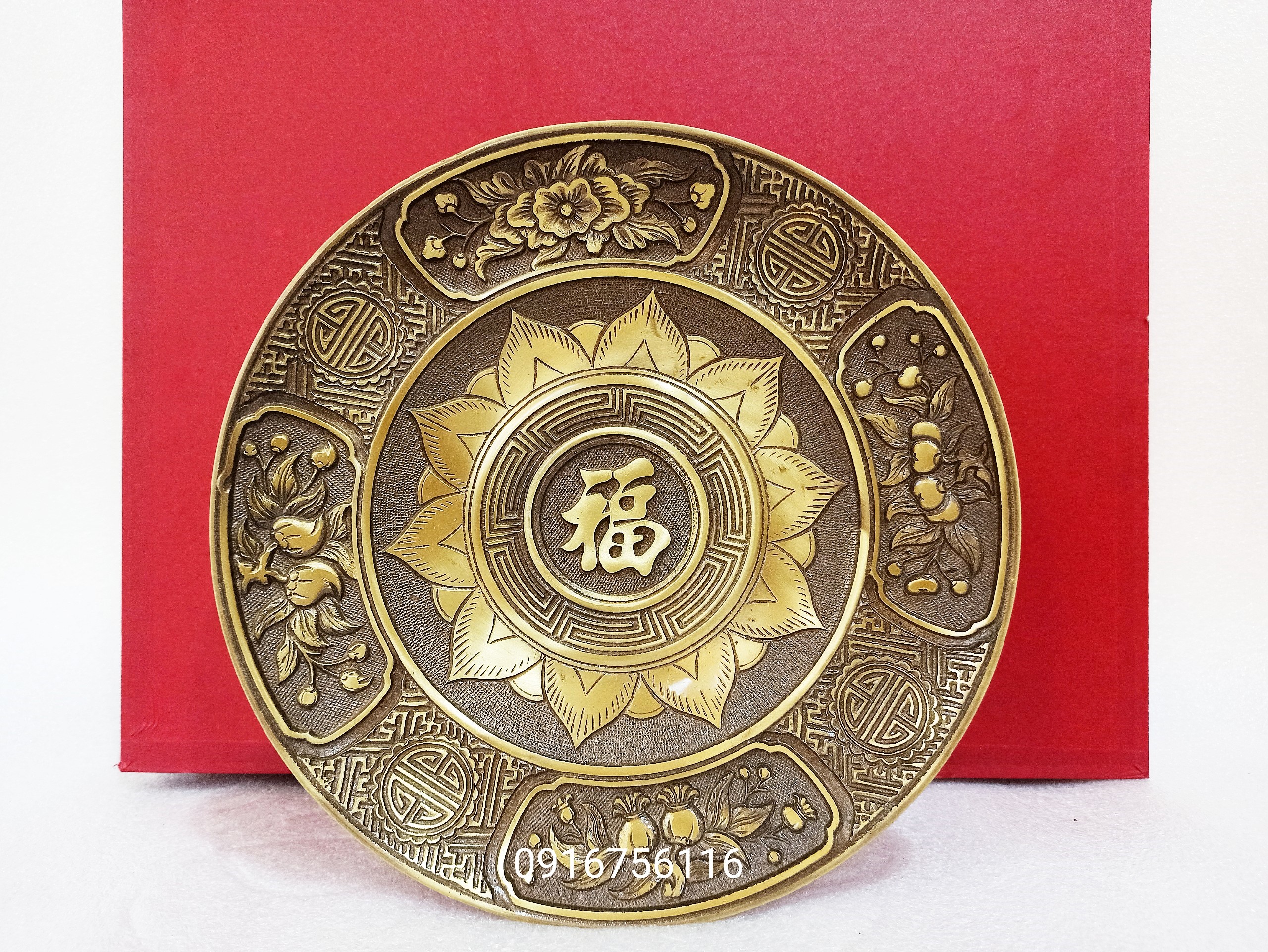 Mâm bồng đựng hoa quả, đúc thủ công đồng vàng, đường kính 28cm, hàng kỹ đẹp, dày dặn