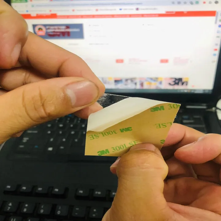 Bước 2: Bóc một mặt băng dính gắn lên vật cần dán sau đó bóc mặt còn lại.