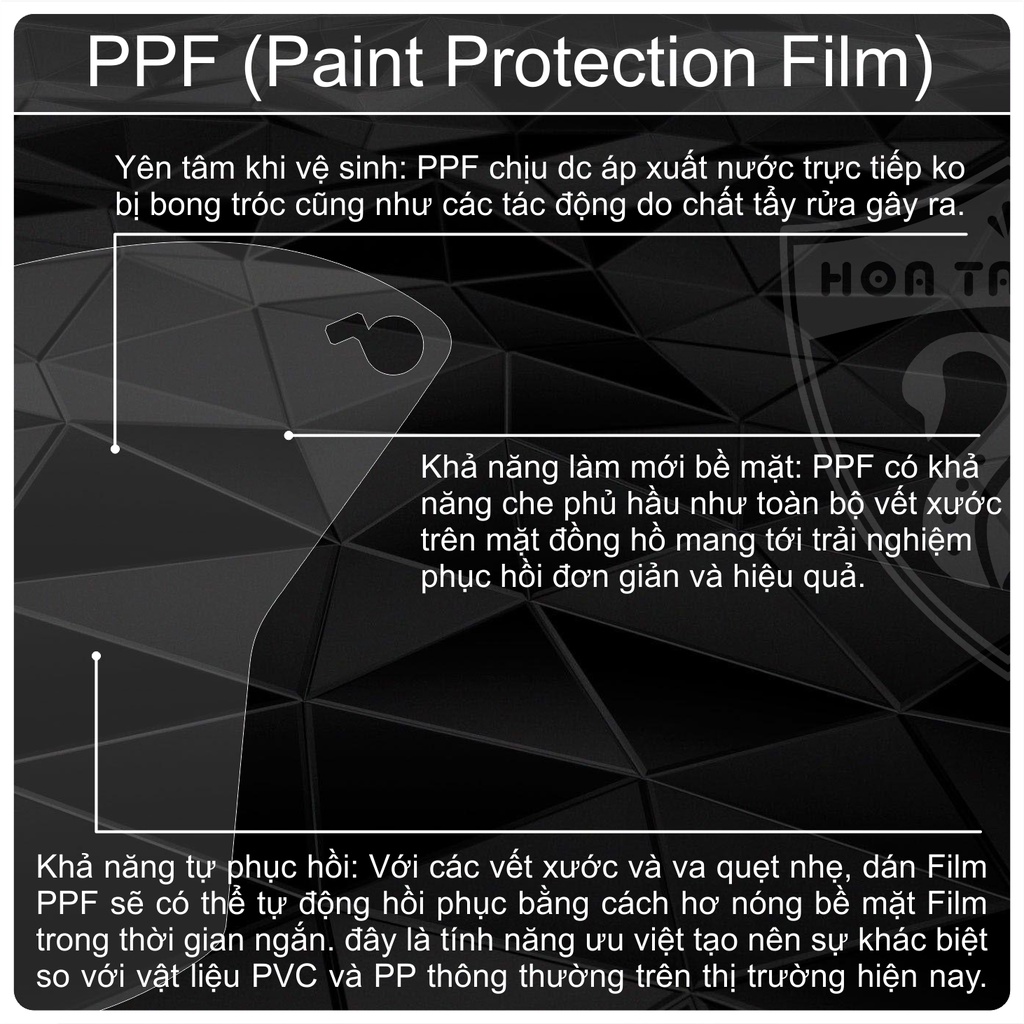 Miếng dán PPF xuất phát từ công nghệ bảo vệ sơn ô-tô cao cấp Film PPF là thuật ngữ viết tắt của Paint Protection Film (PPF) là vật liệu Film bảo vệ màn hình, chất liệu chính của film này là Urethane nhiệt dẻo, ưu điểm của chất liệu này là rất bền, khả năng chống chịu tốt và có thể tự phục hồi với những “tổn thương” nhỏ.