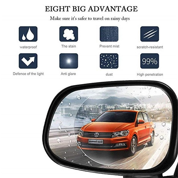 Miếng dán chống nước mưa gương xe là giải pháp hữu hiệu cho các tài xế vào mùa mưa này. Đây là sản phẩm giúp cho gương của ô tô thoát khỏi tình trạng bị bám nước khi di chuyển dưới trời mưa, qua đó cải thiện được đáng kể vấn đề về tầm nhìn. Miếng dán chống nước mưa gương xe có tác dụng loại bỏ các giọt nước, sương bám lại trên gương chiếu hậu.
