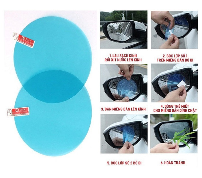 Miếng dán chống nước mưa gương xe là giải pháp hữu hiệu cho các tài xế vào mùa mưa này. Đây là sản phẩm giúp cho gương của ô tô thoát khỏi tình trạng bị bám nước khi di chuyển dưới trời mưa, qua đó cải thiện được đáng kể vấn đề về tầm nhìn. Miếng dán chống nước mưa gương xe có tác dụng loại bỏ các giọt nước, sương bám lại trên gương chiếu hậu.