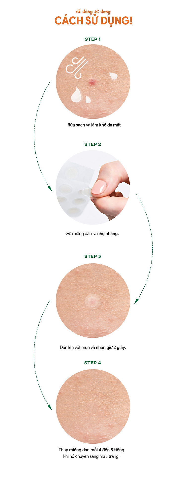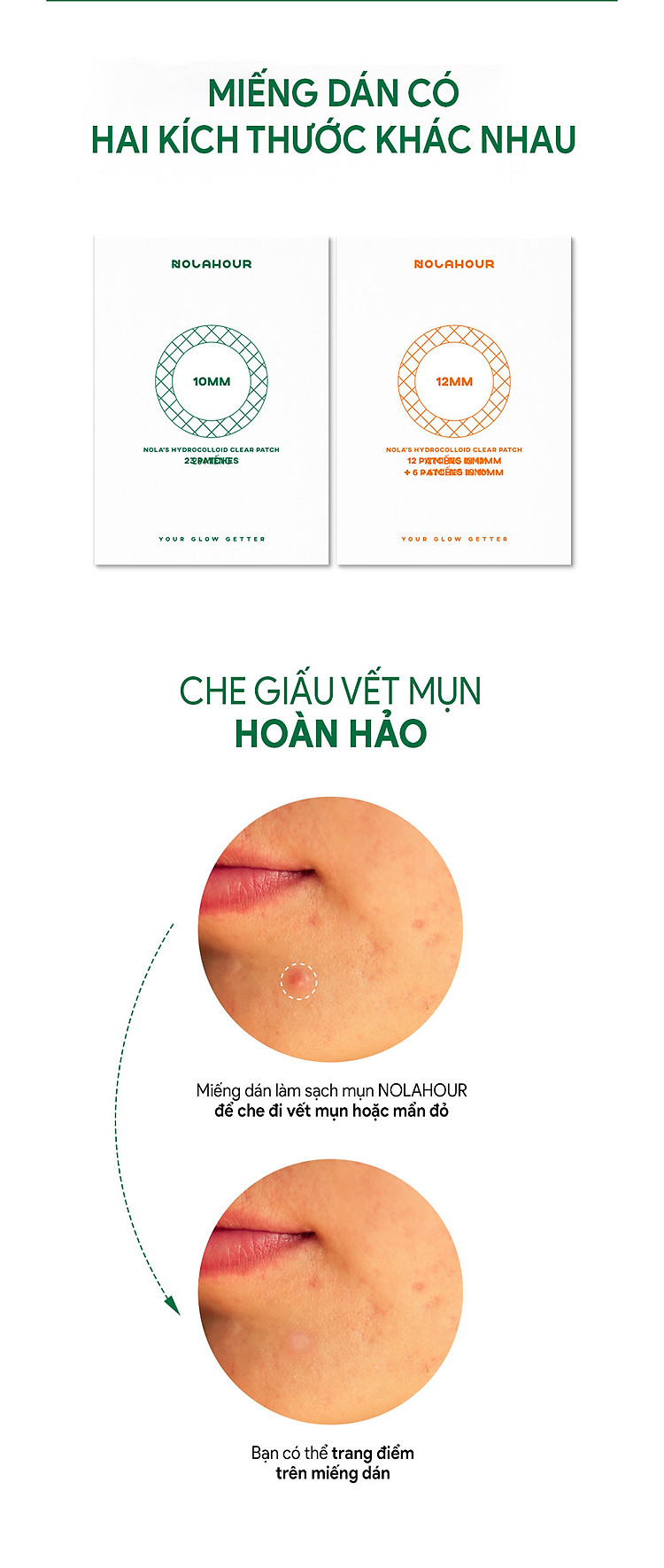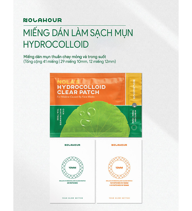Miếng Dán Lột Mụn Làm Sạch Da NOLAHOUR Hydrocolloid Vegan Clear Patch 41 miếng x 10gTrọng lượng : 10g x 41 miếngLoại da : Da mụnNOLAHOUR là thương hiệu mang đến khoảng thời gian chăm sóc cho làn da của bạn với các thành phần hoạt tính chiết xuất từ thực vật.Sản phẩm cũng có nghĩa 'đáng ngạc nhiên' trong tiếng Hàn, mô tả kết quả tuyệt vời của các sản phẩm NOLAHOUR.Nola tượng trưng cho việc phụ nữ có quyền chăm sóc yêu thường bản thân để họ trở thành những người phụ nữ tỏa sáng đẹp từ trong ra ngoài. Công dụng : làm xẹp mụn, làm sạch hiệu quả da, che đi đốm mụn hoặc mẩn đỏ, có thể trang điểm một cách tự nhiên nhất với chất liệu mỏng nhẹ trong suốtThành phần : Hydrocolloid, Chiết xuất từ rau má, tinh dầu lá trà xanh, Niacinamide(được Hiệp hội thuần chay của Vương quốc Anh chứng nhận)Cách Sử Dụng :1. Sử dụng miếng dán mụn trên da đã rửa sạch và lau khô.2. Thoa và ấn nhẹ xuống trong 3 giây