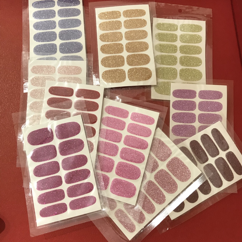 Giới thiệu Miếng dán trang trí móng tay nghệ thuật có sẵn keo, không thấm nước, đi chơi, đi tiệc, trơn kim tuyến - Mã QB