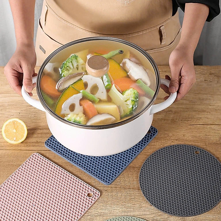 - Thiết kế bám dính – Với thiết kế bề mặt tổ ong giúp tấm lót nồi có độ bám dính cực tốt với mặt bàn và mọi đồ vật được đặt lên.