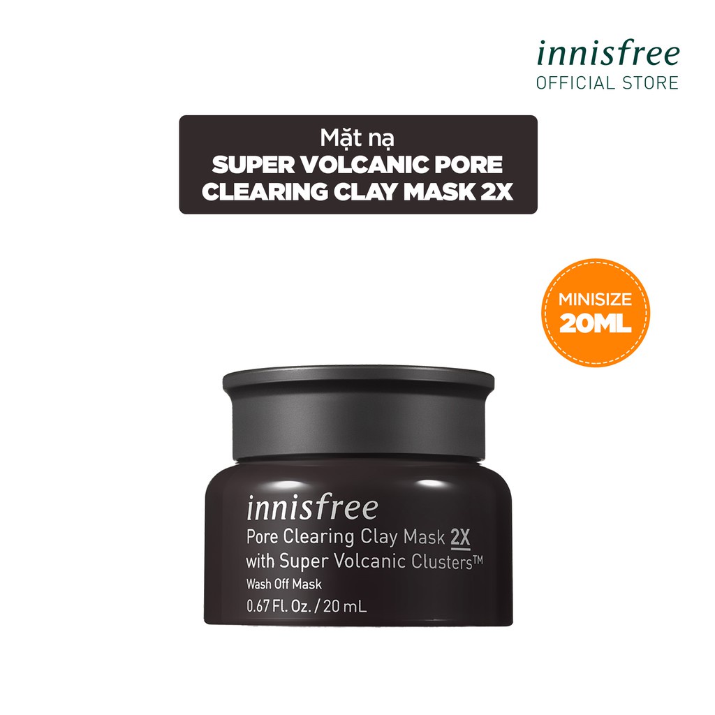 MẶT NẠ CHĂM SÓC LỖ CHÂN LÔNG INNISFREE SUPER VOLCANIC PORE CLEARING CLAY MASK 2X 20ML Mặt nạ giúp làm sạch sâu lớp bã nhờn trên da, se khít lỗ chân lông, cải thiện kết cấu bề mặt da.