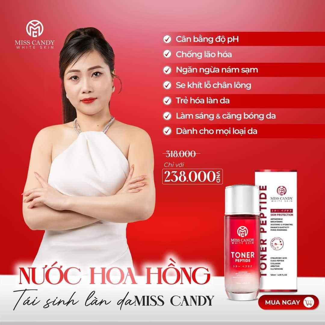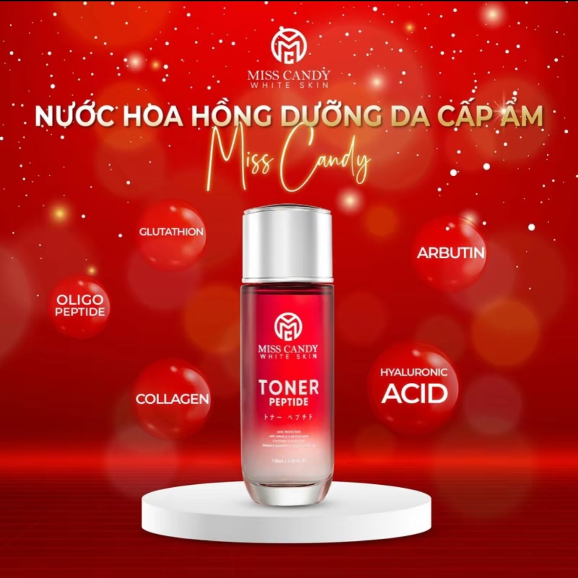 1. Nước Hoa Hồng Tái Sinh Làn Da, Giúp Cấp Ẩm, Khóa Ẩm, Làm Sáng Da Toner Peptide MISS CANDY 120ml: