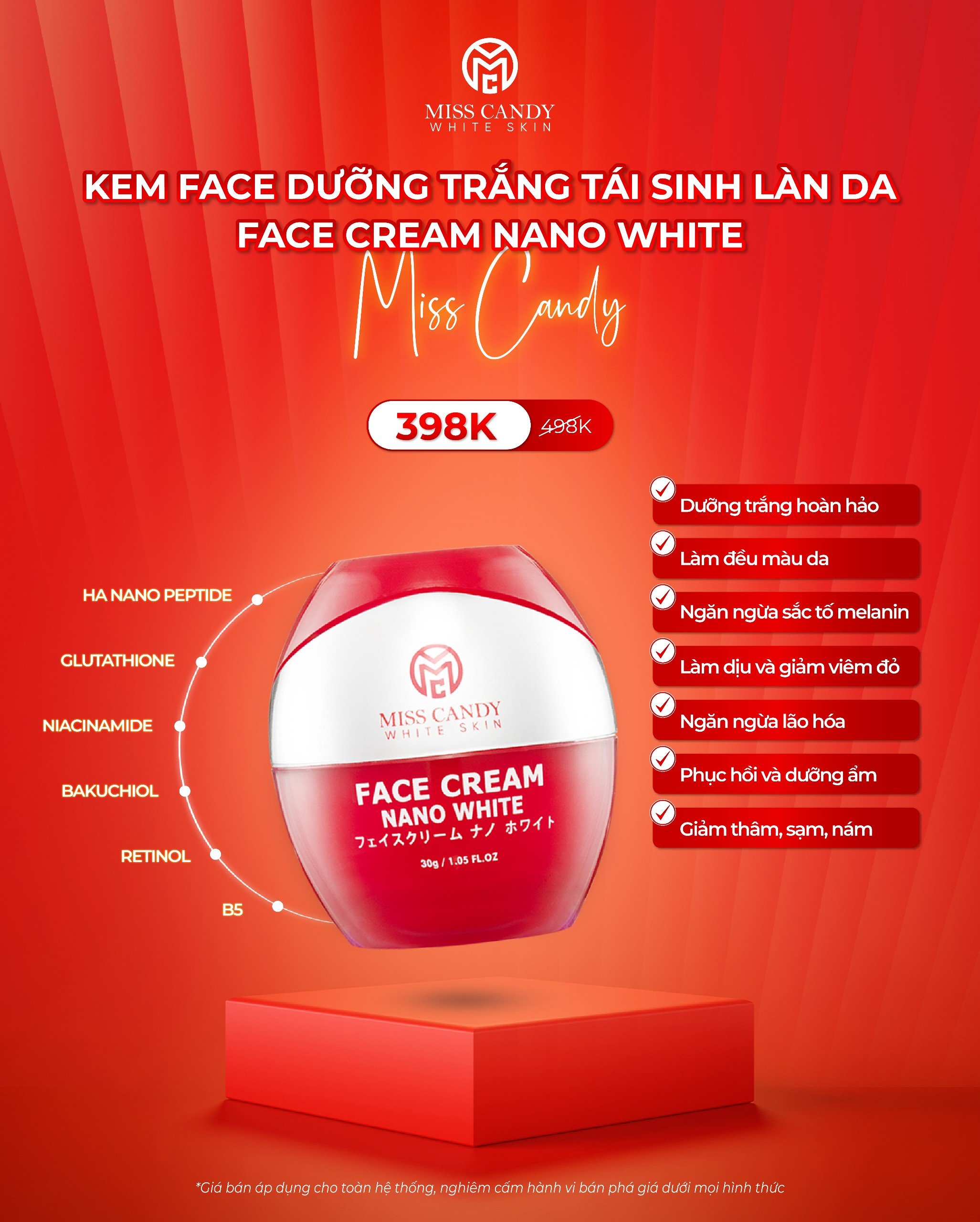 4. Kem Dưỡng Trắng Da Face Nano Miss Candy 30g: