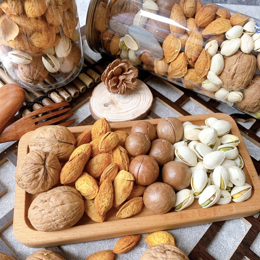 - Thành phần: Hạt óc chó, hạnh nhân, macca, dẻ cười - Hướng dẫn sử dụng: Sử dụng trực tiếp sau khi mở nắp - Hướng dẫn bảo quản: Nhiệt độ thường, nơi khô ráo , thoáng mát, tránh ánh nắng trực tiếp - Trọng lượng tịnh: 500g (bao gồm hũ) - Hạn sử dụng: 06 tháng kể từ ngày sản xuất