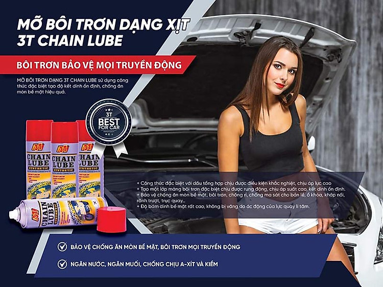Mỡ bò nước chịu nhiệt dạng phun 3T là một thiết kế hiện đại mới tiện lợi hơn trộn lẫn giữa các thành phần mỡ bò với khí nén dạng phun giúp dễ dàng sử dụng và len lỏi mọi ngóc ngách vị trí cần bôi trơn mà bình thường cách tra mỡ bò thông thường không thể bôi trơn đến được.