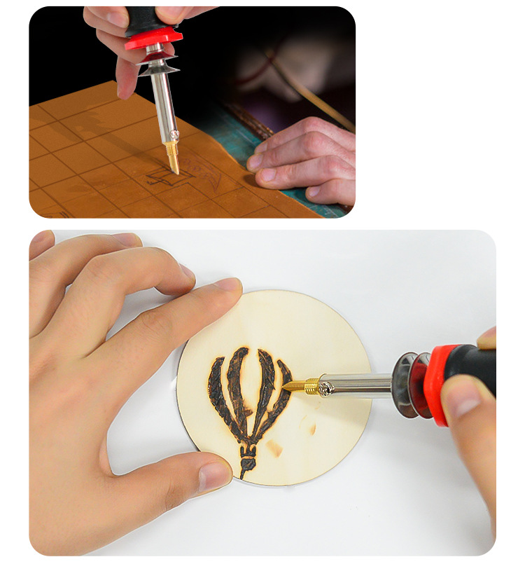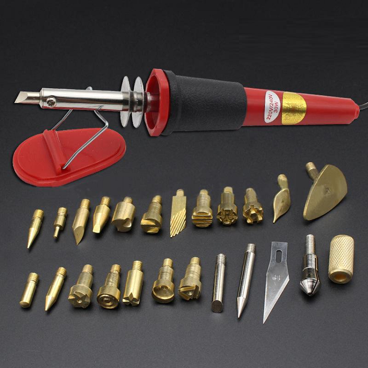 Mỏ hàn dạng bút cầm tay chuyên dụng tích hợp 26 đầu phụ kiện thay thế, an toàn khi thao tác giúp cho bạn có thể thực hiện các mối hàn một cách đơn giản hơn. có các đầu vẽ đa dạng về đường nét với nhiều hình vẽ cơ bản khác nhau: vẽ nét tròn, nét mảnh, ánh trắng khuyết, cánh hoa, lá,… trên gỗ một cách chuyên nghiệp..