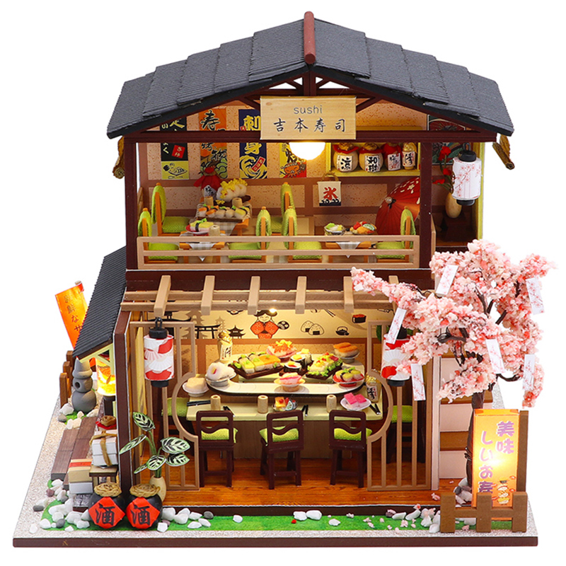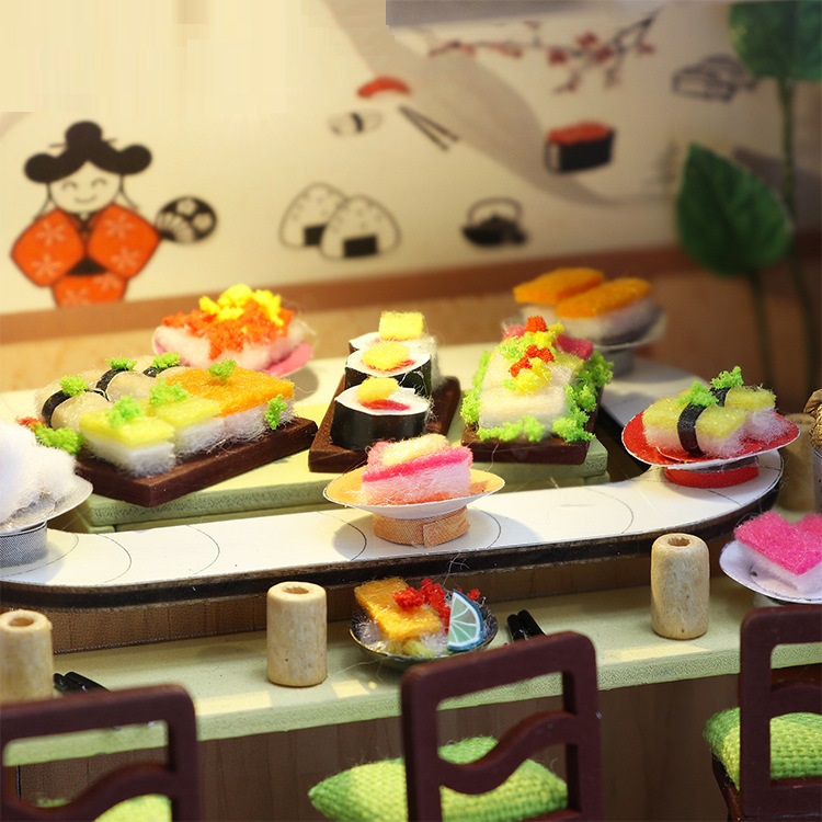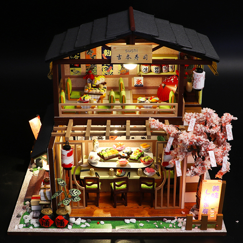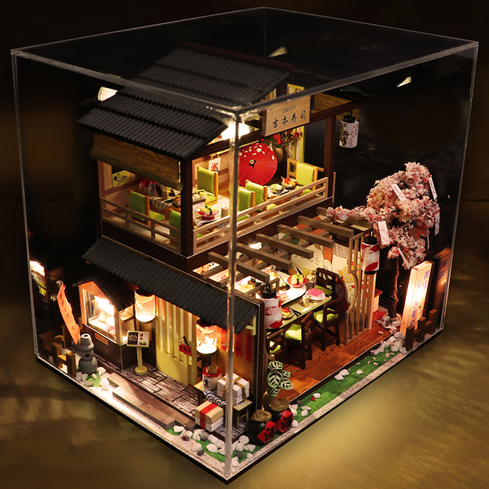 Mô hình nhà DIY Doll House Gibbon Sushi Kèm Mica Chống bụi