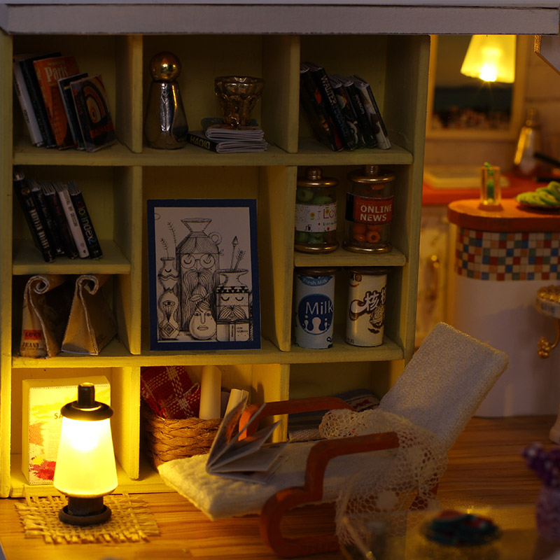 Nhẹ nhàng, tinh khiết là cảm giác đầu tiên khi bạn đặt chân vào Mô hình nhà DIY Doll House Contracted City Kèm Đèn LED và Mica chống bụi. Một gian phòng đơn giản chỉ với gỗ và kính trong suốt, nhưng nó sẽ lại là nơi thích hợp cho những ai cần một nơi yên tĩnh để nhâm nhi một quyển sách. Mùi hương của nhành hoa khô sẽ dẫn lối bạn quanh khắp phòng, để rồi bạn có thể dễ dàng bắt gặp những bức tranh phong cảnh tự nhiên làm thoải mái lòng người. Hoặc bạn đang muốn dán mắt vào những kiến thức hay ho thì trên và dưới bàn làm việc sẽ là những gì mà bạn cần.