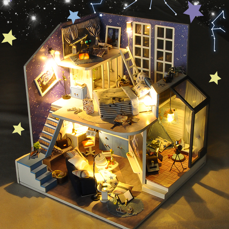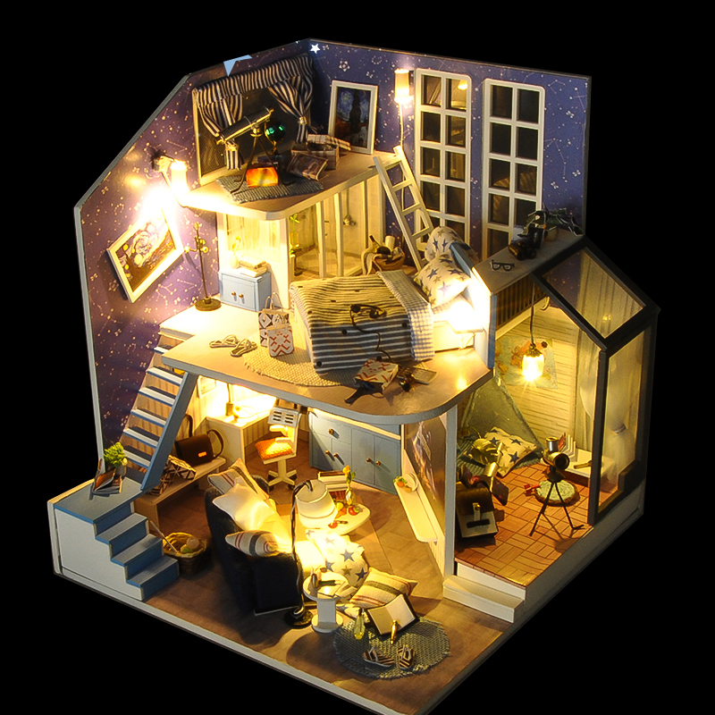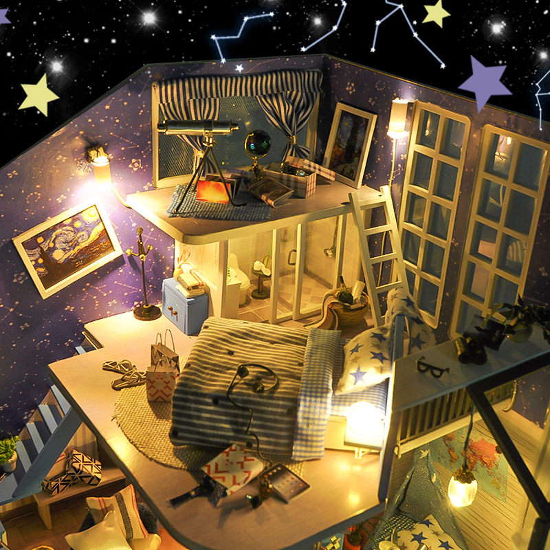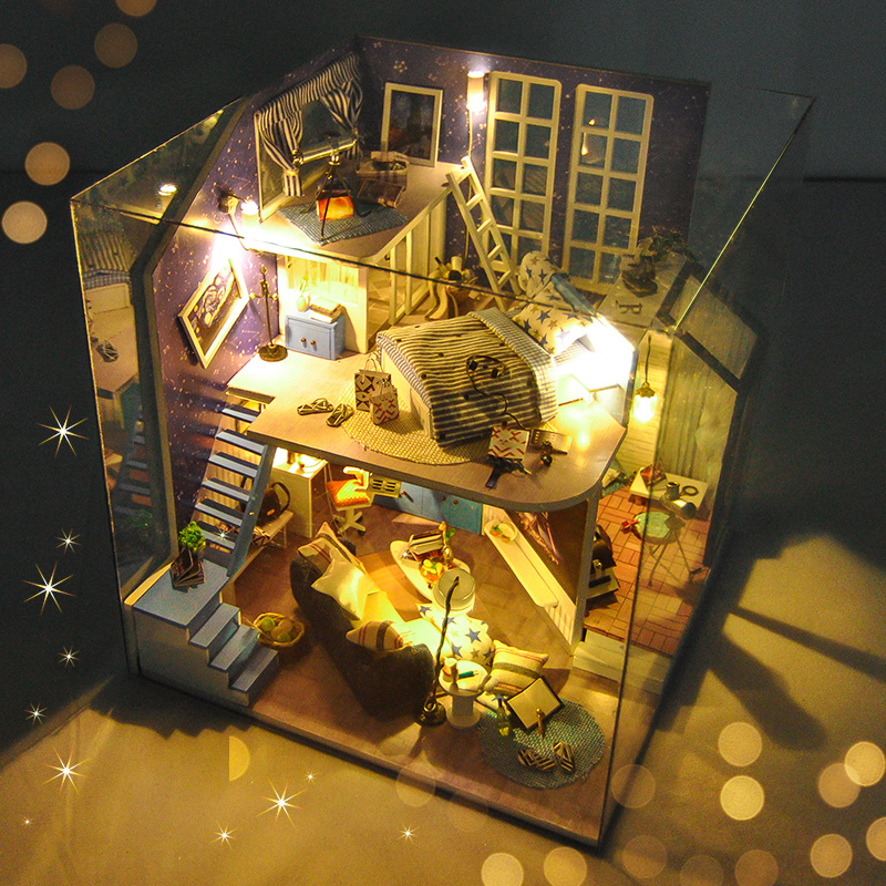 Nhẹ nhàng, tinh khiết là cảm giác đầu tiên khi bạn đặt chân vào Mô hình nhà DIY Doll House Romantic Little Nightlight Kèm Mica Chống bụi. Một gian phòng đơn giản chỉ với gỗ và kính trong suốt, nhưng nó sẽ lại là nơi thích hợp cho những ai cần một nơi yên tĩnh để nhâm nhi một quyển sách. Mùi hương của nhành hoa khô sẽ dẫn lối bạn quanh khắp phòng, để rồi bạn có thể dễ dàng bắt gặp những bức tranh phong cảnh tự nhiên làm thoải mái lòng người. Hoặc bạn đang muốn dán mắt vào những kiến thức hay ho thì trên và dưới bàn làm việc sẽ là những gì mà bạn cần.