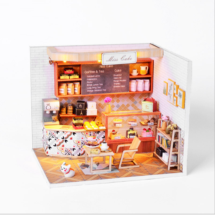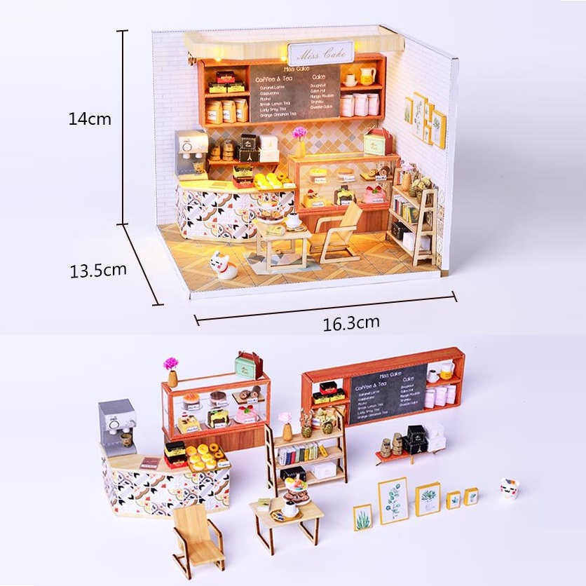 Nhẹ nhàng, tinh khiết là cảm giác đầu tiên khi bạn đặt chân vào Mô hình nhà DIY Doll House Tiệm Bánh Ngọt Miss Cake Kèm Mica Chống bụi. Một gian phòng đơn giản chỉ với gỗ và kính trong suốt, nhưng nó sẽ lại là nơi thích hợp cho những ai cần một nơi yên tĩnh để nhâm nhi một quyển sách. Mùi hương của nhành hoa khô sẽ dẫn lối bạn quanh khắp phòng, để rồi bạn có thể dễ dàng bắt gặp những bức tranh phong cảnh tự nhiên làm thoải mái lòng người. Hoặc bạn đang muốn dán mắt vào những kiến thức hay ho thì trên và dưới bàn làm việc sẽ là những gì mà bạn cần.