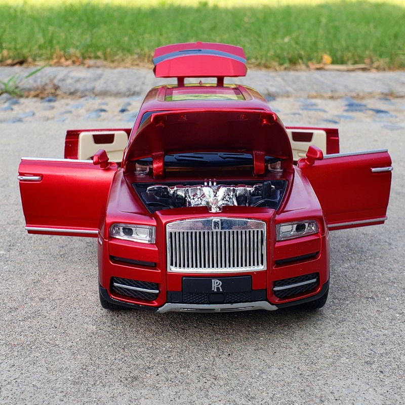 Xe mô hình Rolls Royce Cullinan 1:24 Chezhi Chất liệu hợp kim, sơn tĩnh điện cao cấp. Xe mở được 4 cửa, cốp sau và đuôi gió. Xe chạy đà, có đèn và nhạc.