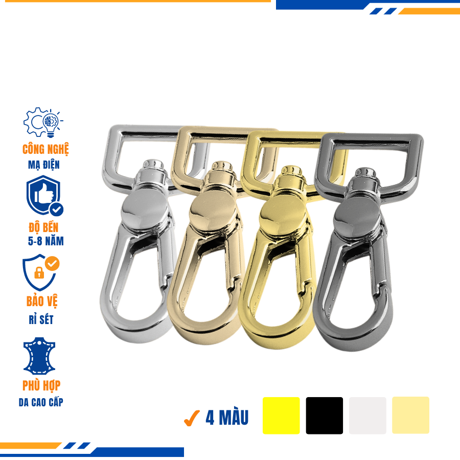 – Tên sản phẩm : Móc càng cua túi xách,móc khóa càng cua túi xách,móc chó túi xách 19mm Mạ điện bền 5-8 năm