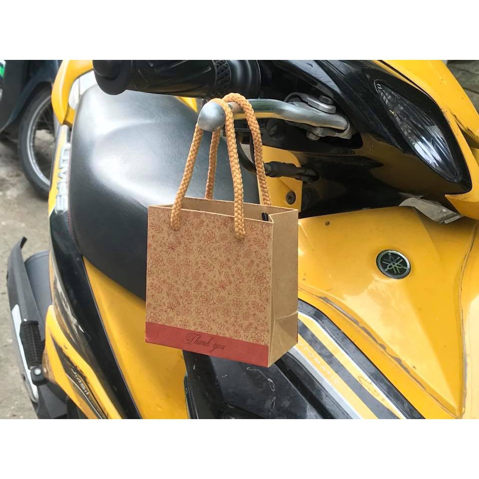 Túi giấy giả kraft mẫu 16 - Kích thước: 10cm x 10cm x 5cm (cao x ngang x hông). - Chất liệu: Giấy Kraft Ý 230gsm (Mặt trong màu trắng láng) - Loại quai: Quai vải tròn *Công dụng và lợi ích: - Có thể chứa đồ trọng lượng 30g – 200g - Làm túi đựng quà, son, mỹ phẩm - Túi giấy thân thiện với môi trường - Phục vụ việc kinh doanh - Nhỏ gọn, tiện lợi, sành điệu Phù hợp: Phù hợp mặt hàng son môi, mỹ phẩm, nước hoa, tặng phẩm nhỏ…