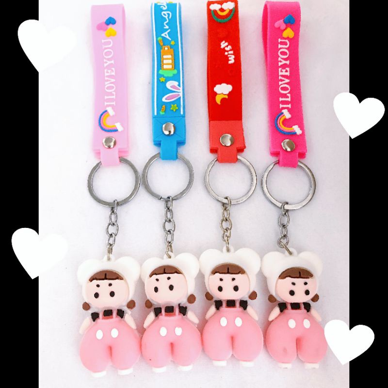 Móc khóa cặp cute hoạt hình cô bé hồng dễ thương cute cực hot giá rẻ chất liệu PVC cứng