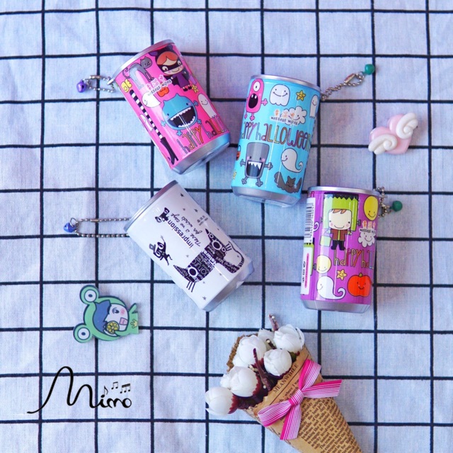 * Móc khoá hình lon, thêm vào đó còn kèm theo giấy ướt trong vỏ lon mùi thơm nhẹ
