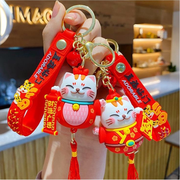 Bộ sản phẩm bao gồm: 1 Móc khóa mèo thần tài size lớn có dây silicon trang trí