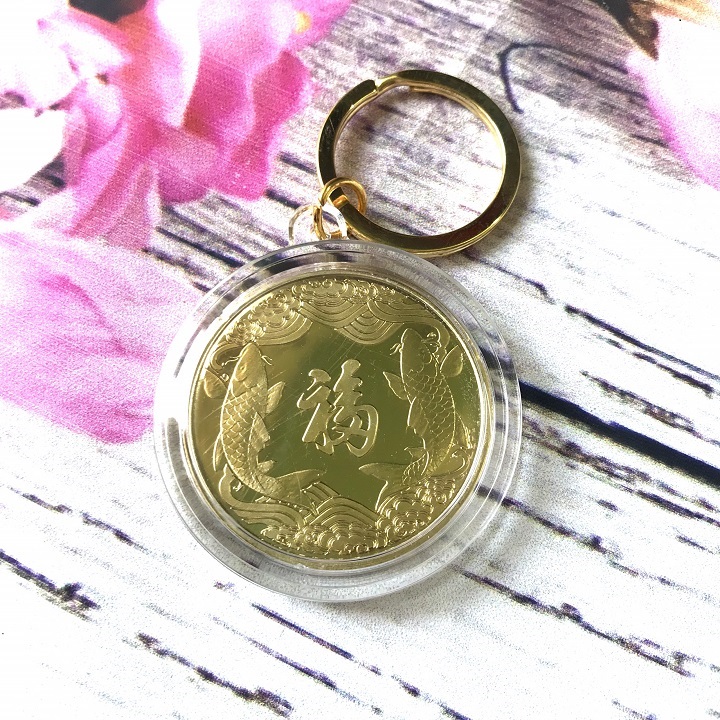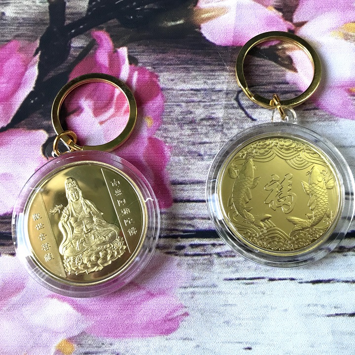 Tên sản phẩm | Móc khóa Xu Quan Âm màu Vàng Cá Chép. |