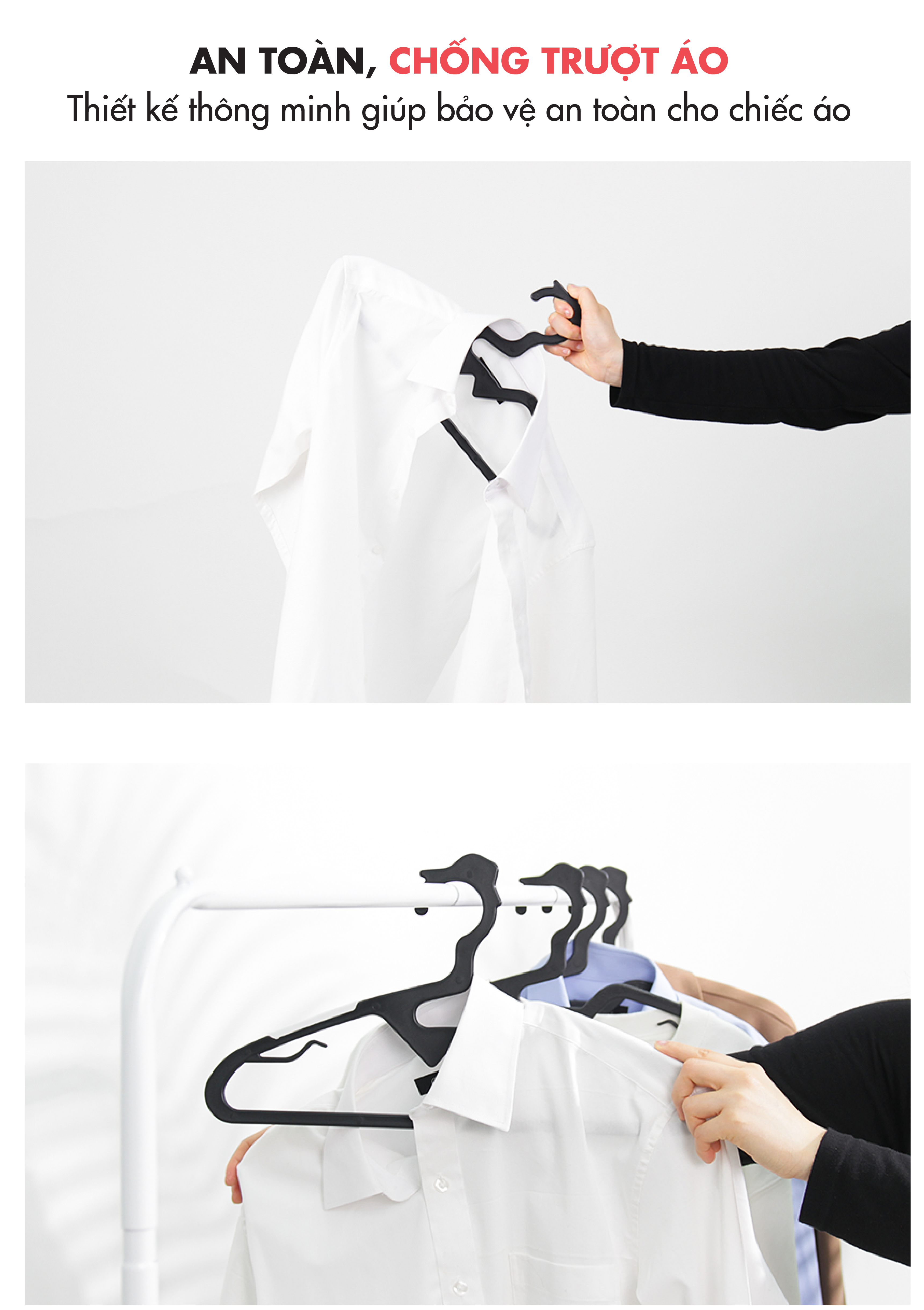 - Dễ dàng móc quần áo vào mà k bị kẹt và không bị rơi rớt quần áo