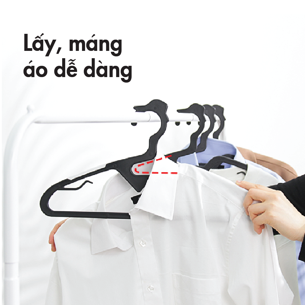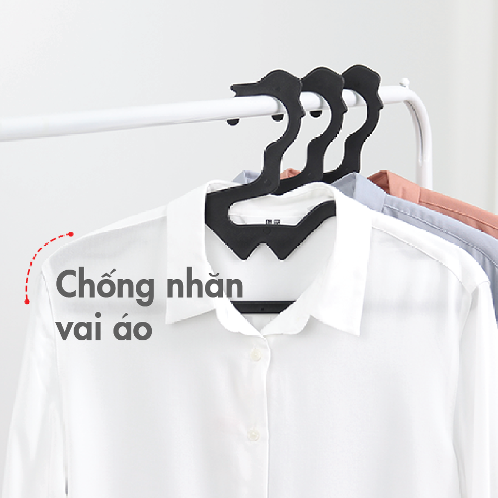 - Móc được thiết kế dài hơn giúp nâng đỡ phần vai áo giảm nếp nhăn
