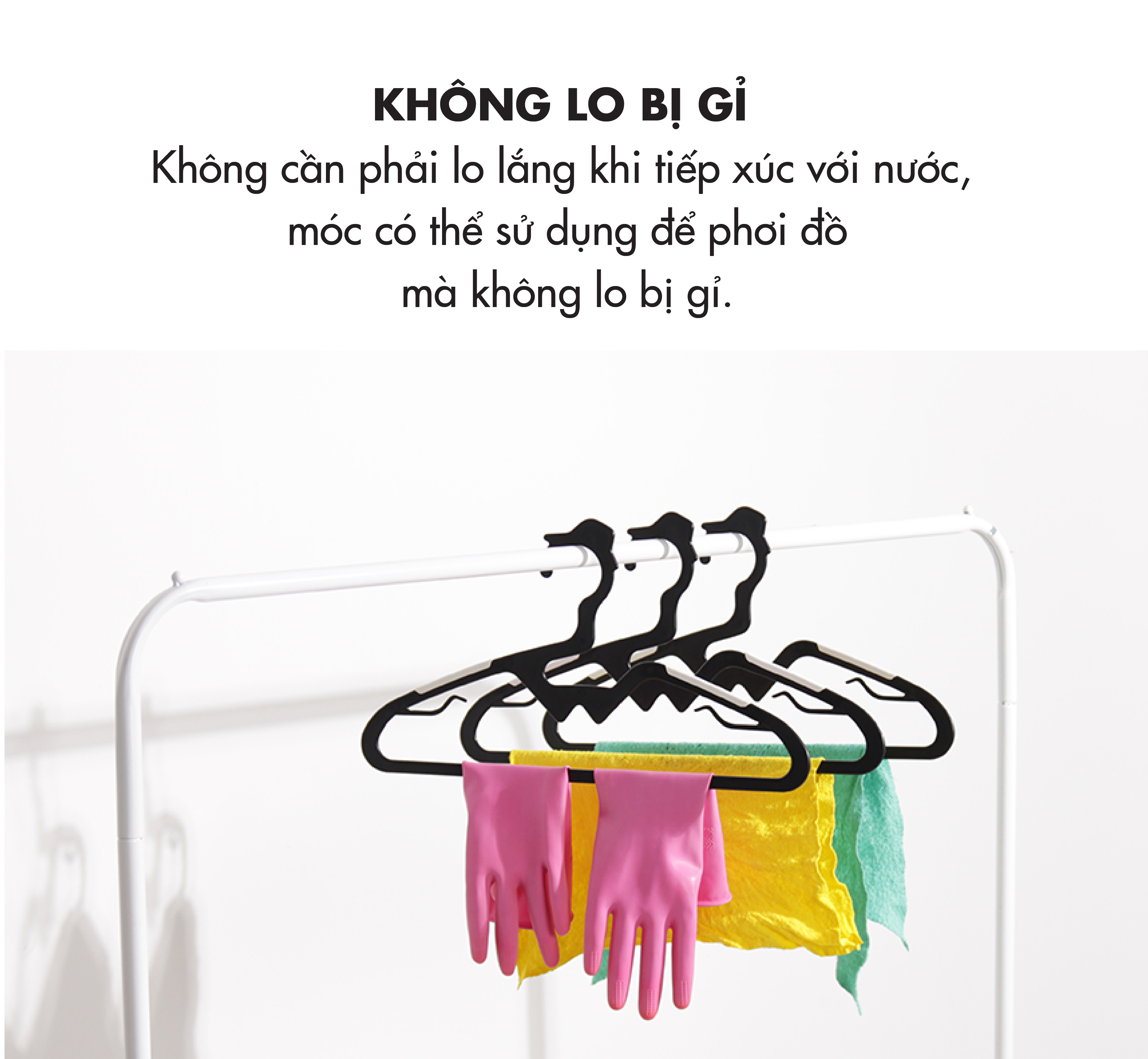 - Không lo hiện tượng gỉ khi sử dụng móc bằng nhựa, có thể sử dụng để phơi đồ mà không cần lo lắng