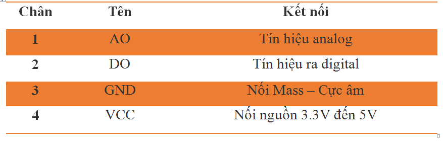 Mô tả sơ đồ chân của module cảm biến ánh sáng
