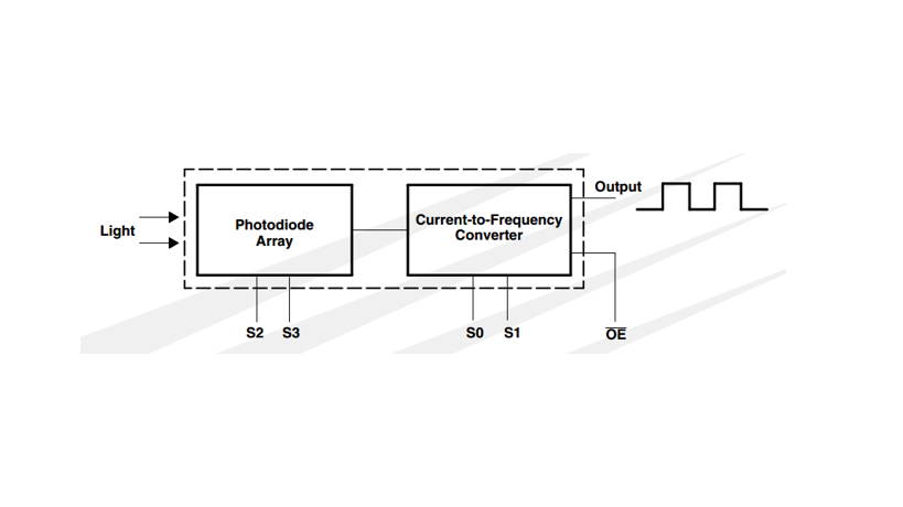 Bộ chuyển đổi ánh sáng sang tần số đọc 1 mảng 8x8 của các photodiodes.16 photodiodes có bộ lọc xanh dương,16 photodiodes có bộ lọc xanh lá,16 photodiodes có bộ lục đỏ và 16 photodiodes không có bộ lọc.