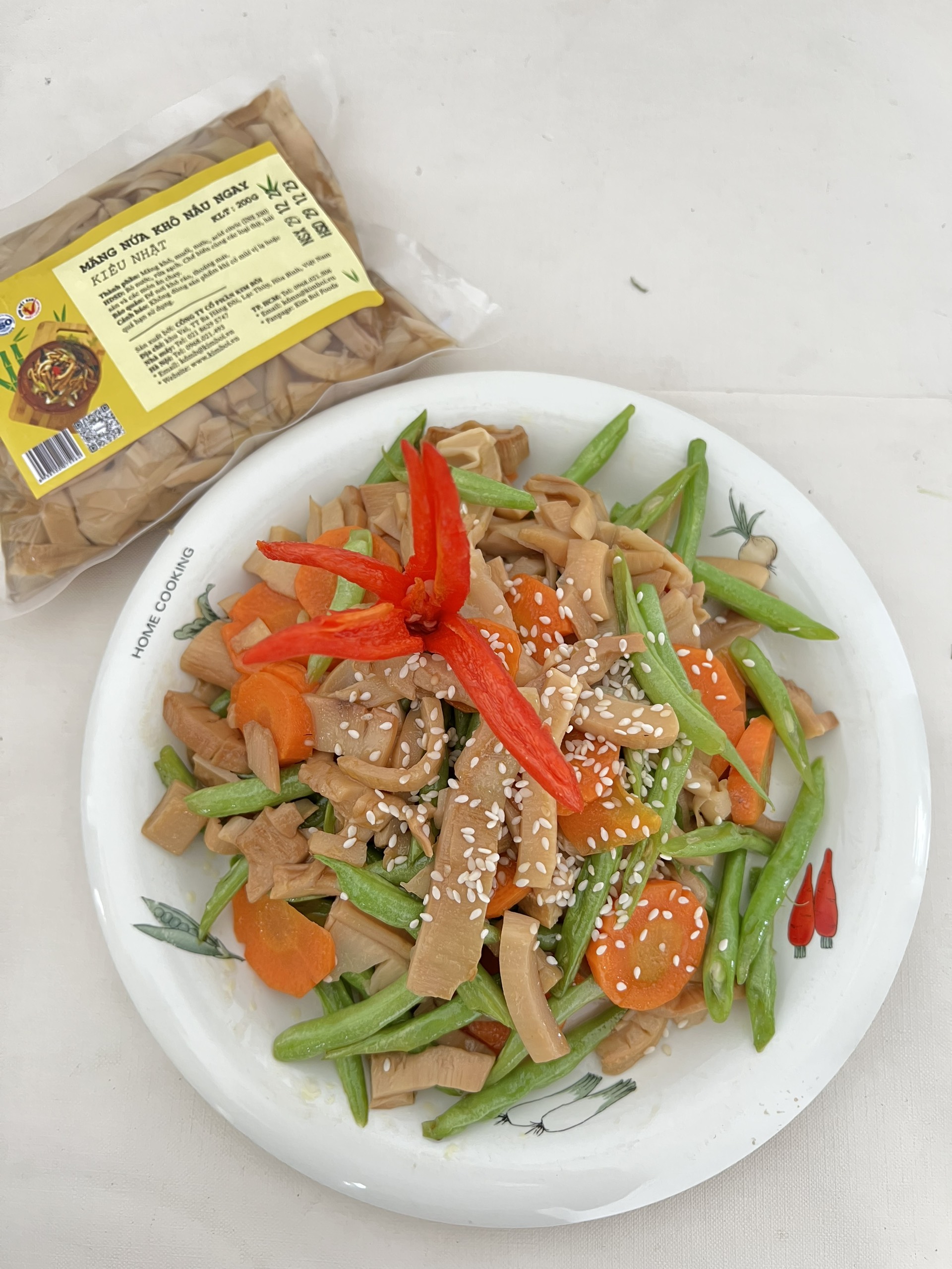 Măng nứa khô nấu ngay kiểu Nhật là món ăn được nhiều người ưa thích, sử dụng để xào, nấu canh, hay làm các món đặc biệt khác. Với sản phẩm măng khô, bạn có thể chế biến rất nhiều món ăn hợp khẩu vị gia đình mình. Hơn nữa sản phẩm được đóng gói an toàn vệ sinh, dễ sử dụng và bảo quản.