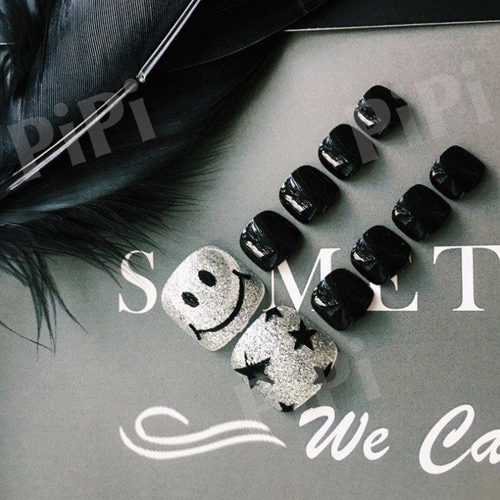 Giới thiệu Móng chân giả kèm keo dán đẹp thiết kế nhám sần bóng đen xanh nâu Bộ 24 chiếc đủ size 46