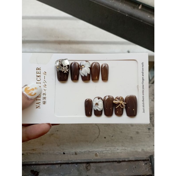 Sắc Đẹp > Chăm sóc tay, chân & móng > Chăm sóc móng > Móng giả || Móng giả tone nâu hộp 10 móng kèm keo, dũa