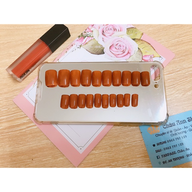 Giới thiệu Bộ móng tay + keo dán màu nâu đất bóng
