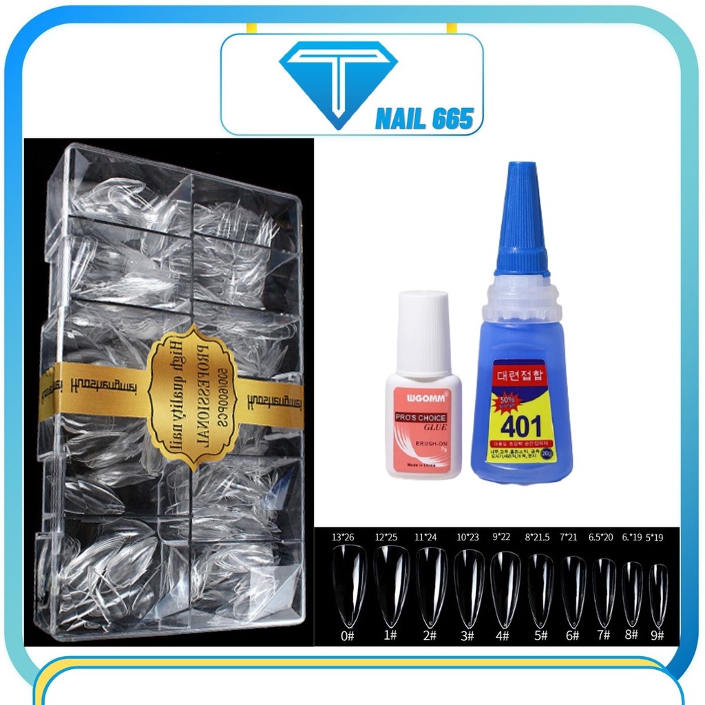 * Cách sử dụng móng úp tay fom bầu , ovan hộp 500 móng - B1: Phao nhám bề mặt móng thật , đo và chọn size móng phù hợp - B2: Nhỏ keo vào 2/3 móng giả rồi úp lên móng tay thật ( Lưu ý thao tác n hanh , rứt khoát để tránh bị không khí vào trong dẫn đến hiện tượng bọt khí - B3: Giữ móng giả khoảng 10s cho đến khi keo khô