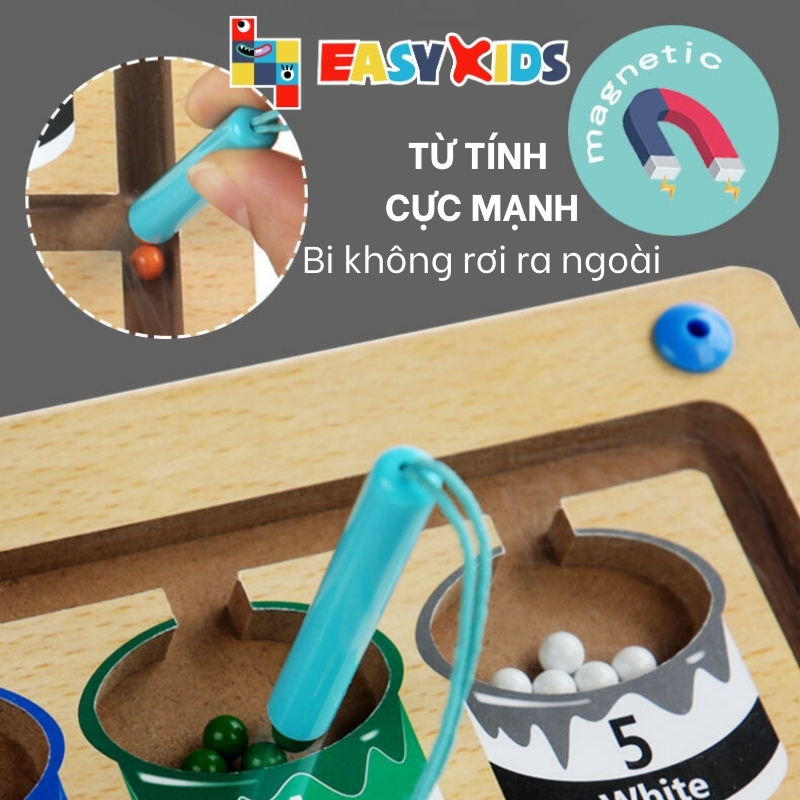 - Sản phẩm gồm: 1 bút từ tính (dùng di chuyển hạt) và 1 bảng mê cung màu sắc